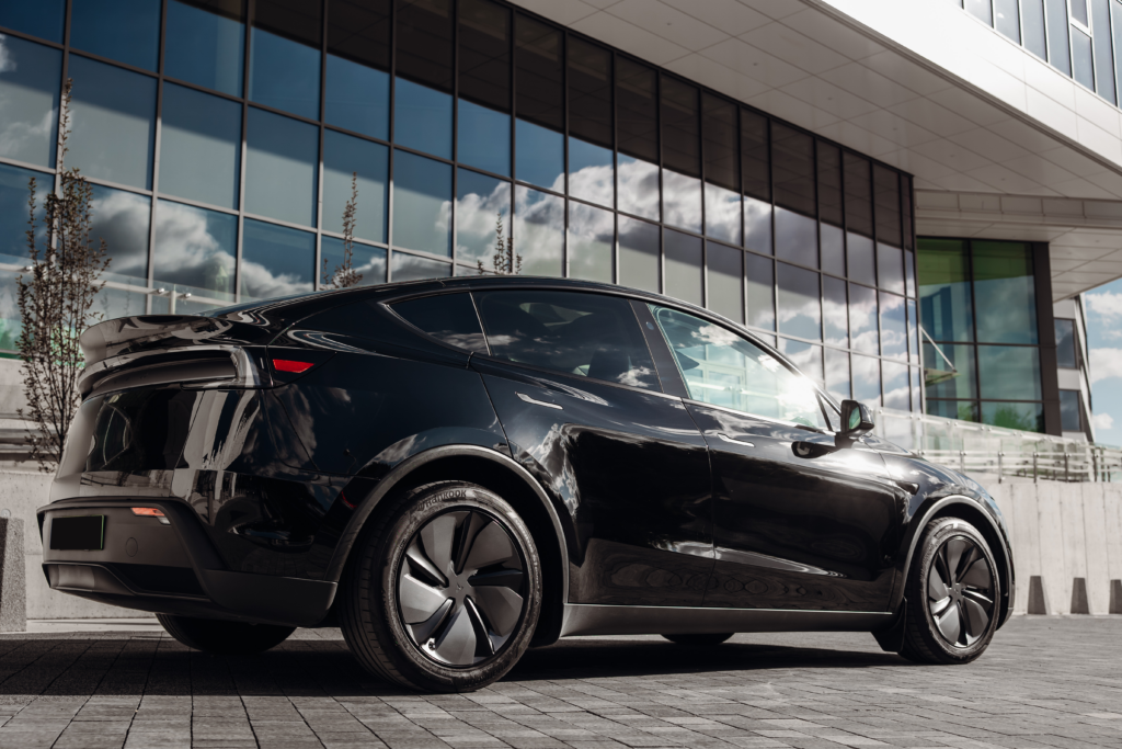 Tesla Model Y Performance to połączenie nowoczesnej elektromobilności, sportowych osiągów oraz funkcjonalności SUV-a. Minimalistyczna, aerodynamiczna sylwetka oraz charakterystyczny design Tesli sprawiają, że samochód prezentuje się nowocześnie i dynamicznie, wyróżniając się na drodze.